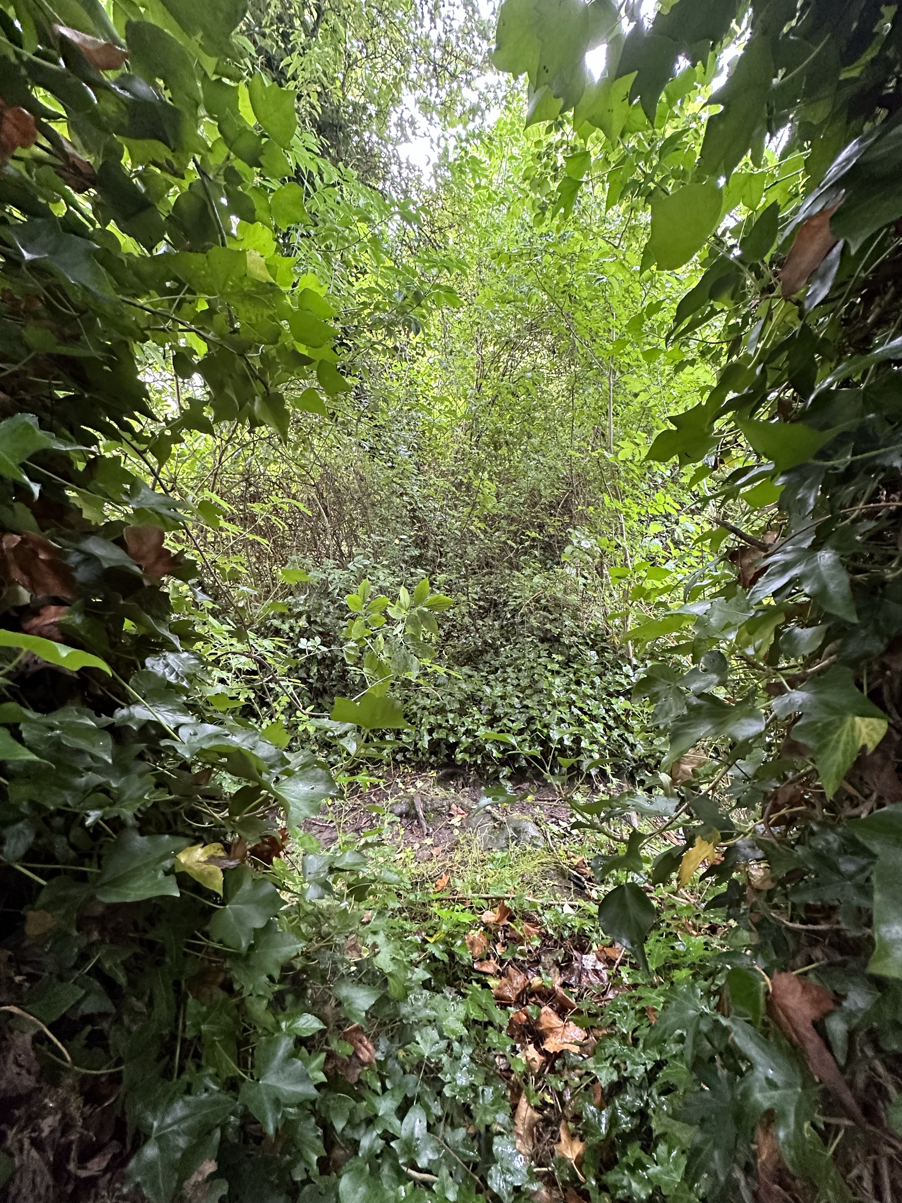 My second observation is that I’ll end up with a pile of clay on my grass. Intent on leaving no trace, I lay down a sheet next to the hole and pile the earth on top. As I empty my spade of earth on the tarpaulin and hear the rustle, I take a break and soak up the scene I’ve created. I take a sip of cool water in the hot sun and can’t help feeling a sort of connection. I lean on my spade, present in the scene, and a Robin lands by my side.